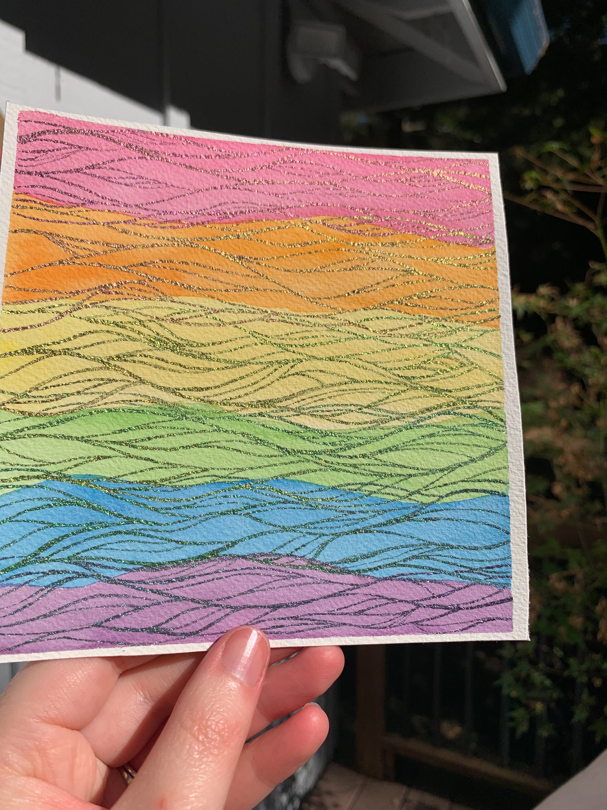 Abstract watercolor painting on 100% cotton paper, 6 inches by 6 inches
